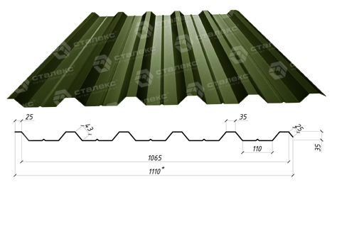 Профнастил «Сталекс» НС-35 0,5 мм RAL 6020 ARVEDI Італія
