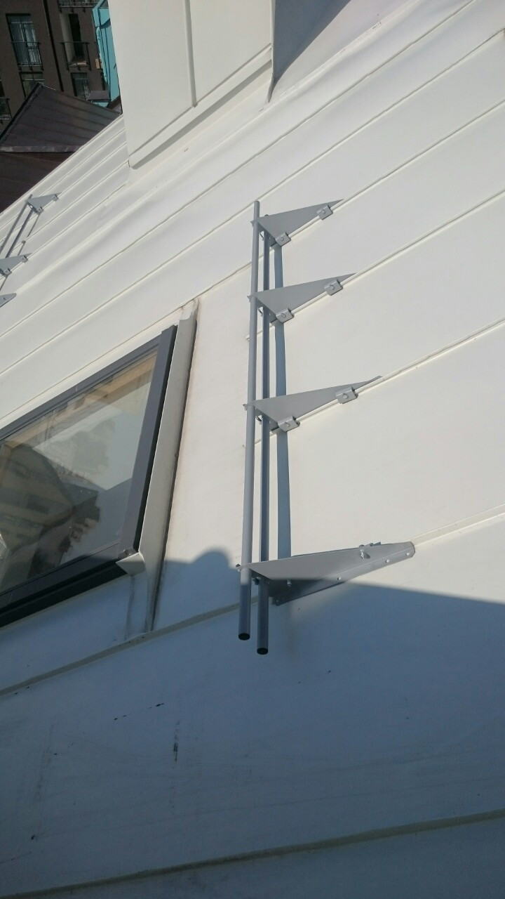 Снігозатримувачі на даху (снігові бар’єри, трубчасті снігозатримувачі) захищають від снігу та льоду водостійку систему, людей, зелені насадження, автомобілі на паркінгу.